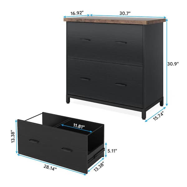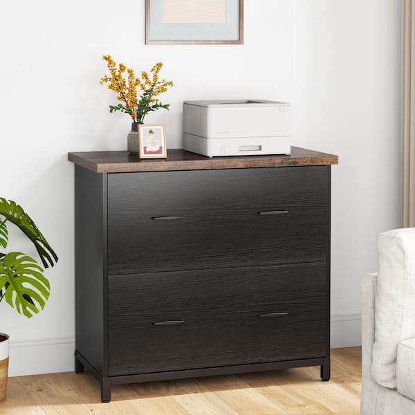 • 2-Drawer Black Wood Lateral File Cabinet for Home Office