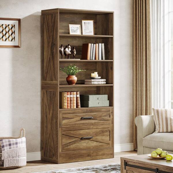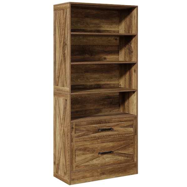 Atencio 2-Drawer Brown Wood 31.5 in. W Vertical File Cabinet with 3 Shelves Adjustable Rails for Legal/Letter/A4 Size