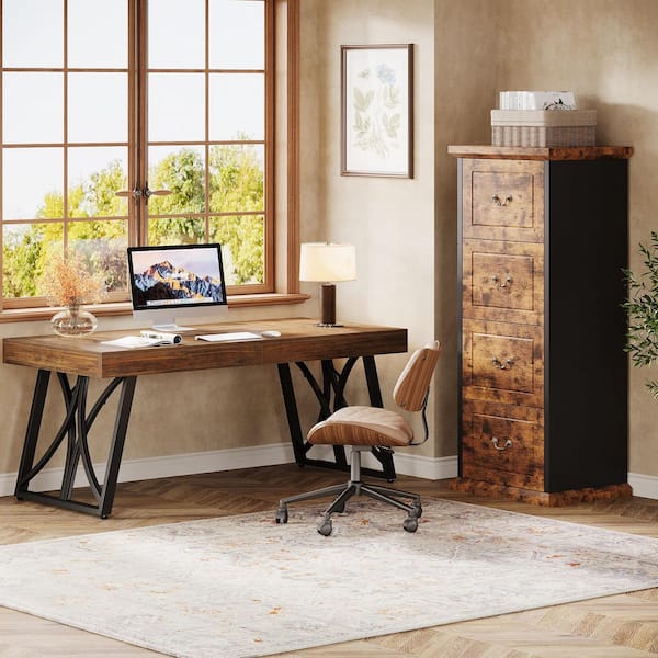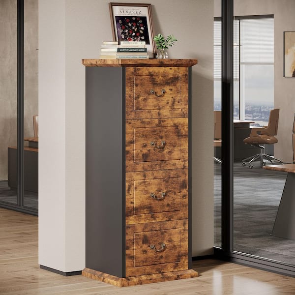 Atencio 4-Drawer Classic Brown&Black Wood 21.26 in. W Vertical File Cabinet,Tall Filing Cabinet for Legal/Letter/A4 Size