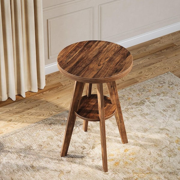 Bottle Circular Brown 38 in. Corner Bar Home Table with Storage 2-Tier Bar Cabinet Unit Liquor Bistro Table Farmhouse
