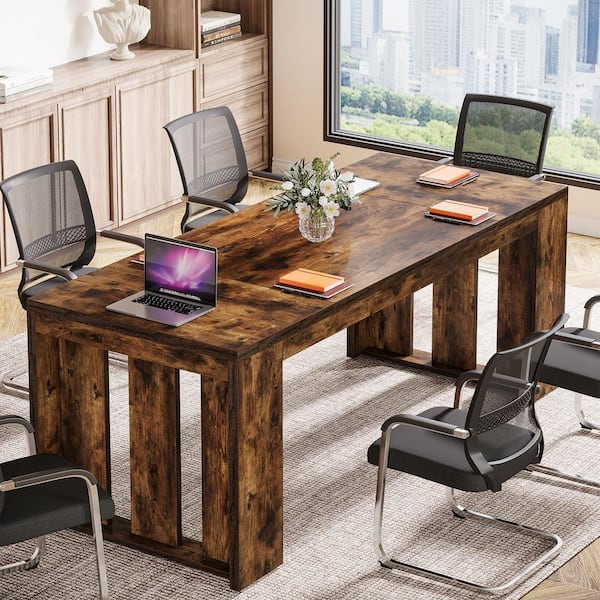 Capen 62.9 in. Rectangular Brown Engineered Wood Computer Desk Conference Table