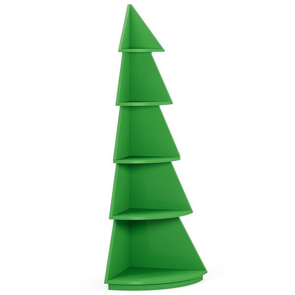 Eulas 18.7 in. Tall Green Wood 5-Shelf Etagere Bookcase with Shelves and Storage
