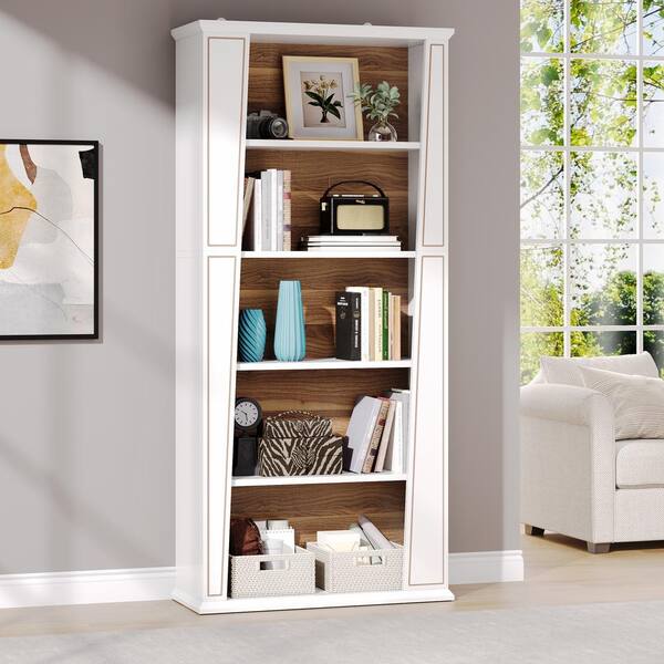 Eulas 70.8 in. Tall White Engineered Wood 5-Shelf Modern Standard Bookcase