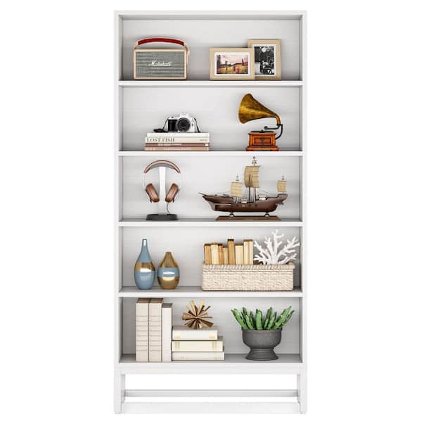 Eulas 70.8 in. Tall White Wood 5-Shelf Standard Bookcase with Heavy-Duty Metal Support, Library Bookshelf Shelf