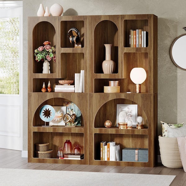 Eulas 70.9 in. Tall Brown Wood 5-Shelf Standard Bookcase Set of 2, Open Art Decor Display Shelf with 5 Irregular Storage