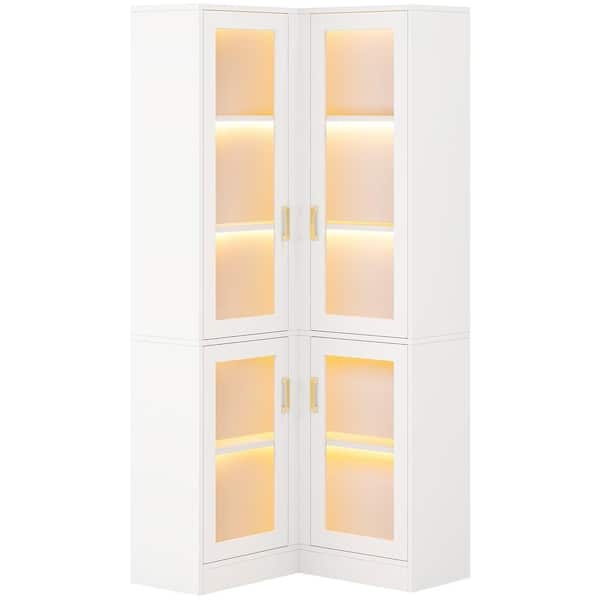 Eulas 70.9 in. Tall White Wood 5-Shelf Standard Bookcase with LED Light, Modern Bookshelf with 4 Acrylic Doors