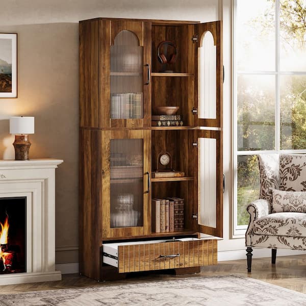 Eulas 72.05 in. Tall Brown Engineered Wood 4-Shelf Standard Bookcase Bookshelf Cabinet with Door and Drawer