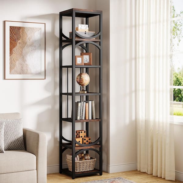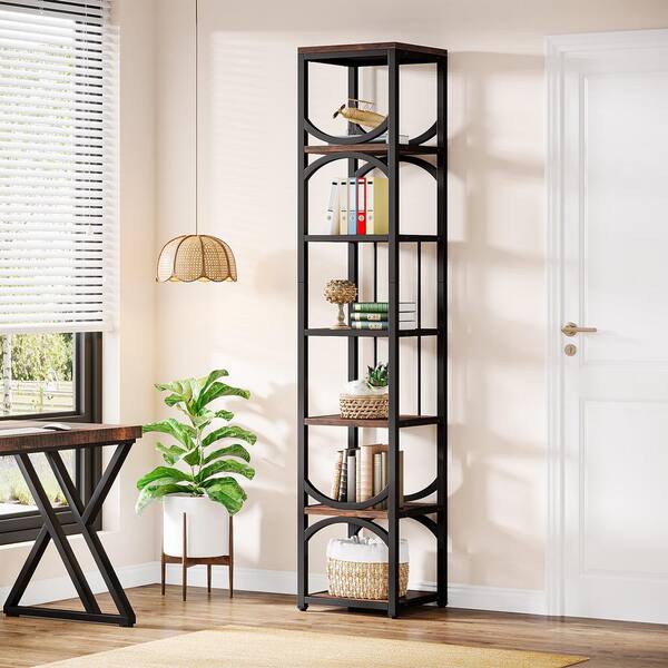 Eulas 72 in. Tall Brown Engineered Wood 7-Shelf Etagere Bookcase, Industrial Book Shelf with Storage