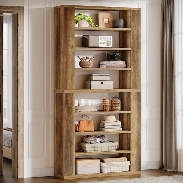 Eulas 80 in. Tall Brown MDF 9-Shelf Bookcase with Open Display Storage Shelves for Home Office, Living Room