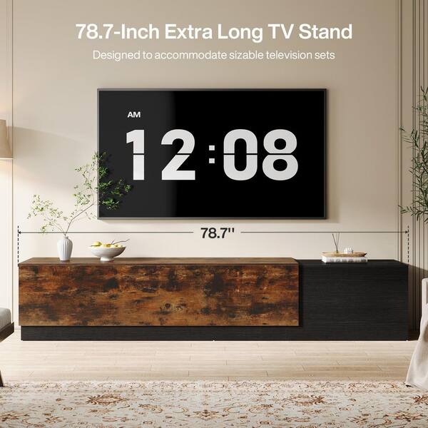 Ezlynn Black and Brown Long TV Stand, Entertainment Center with Side Storage Fits TV's up to 85in.