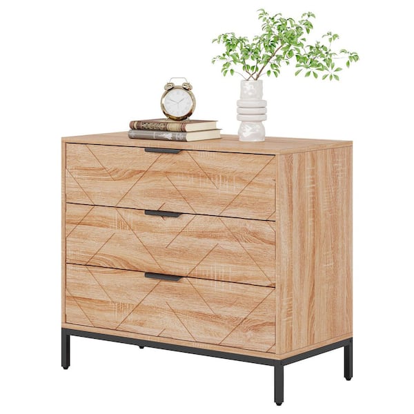 Fenley Brown 3-Drawer 31.5 in. W Tall Modern Nightstand Large Bedside Table with 4-Sturdy Legs for Bedroom