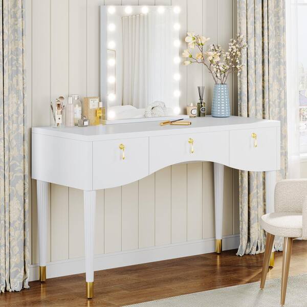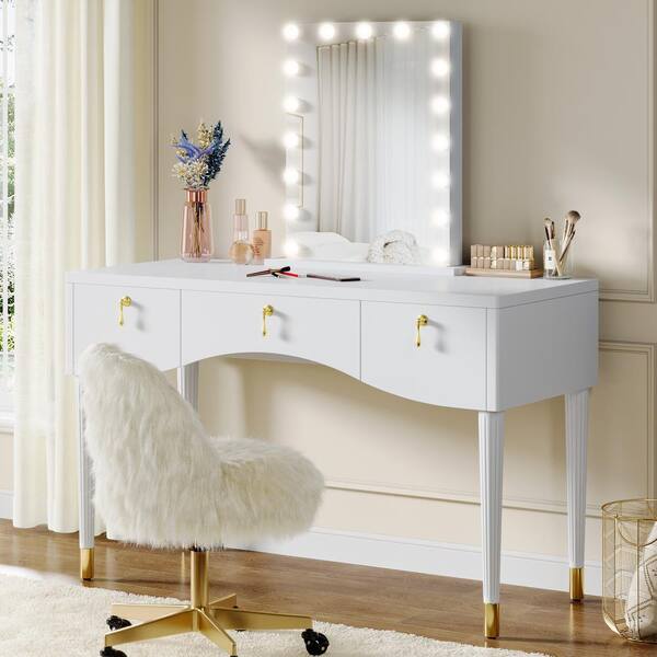 Helotes 2-Piece White Makeup Vanity Set with LED Lighted Mirror and 3 Drawers for Home Office Bedroom