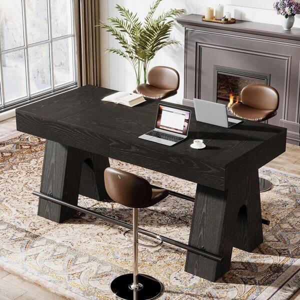 Kearsten Black 63 in. Bar Height Pub Table, Rectangular High Top Dining Counter Tables with Metal Footrest for Home Bar