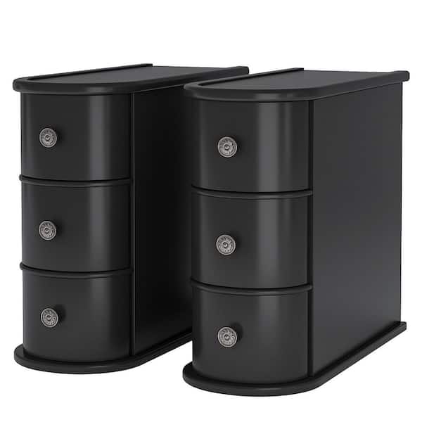 Kerlin 10.6 in. Black Rectangular Wood End Table Set of 2 No Assembly Required Solid Side Table with 3-Drawer