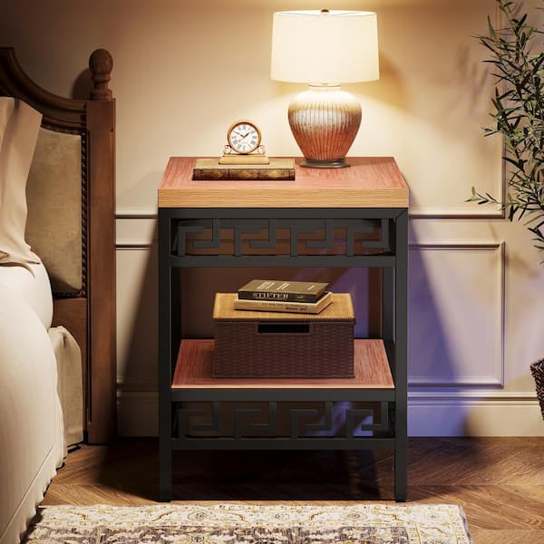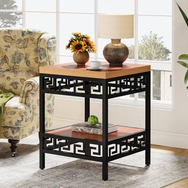 Kerlin 19.69 in. Light Oak Square Wood End Table with Storage Shelf