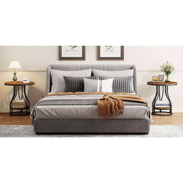 Kerlin 19.7 in. Brown Round Rustic Wood Side Table 2-Tier End Table with Metal Frame for Living Room, Bedroom, 2-Pieces