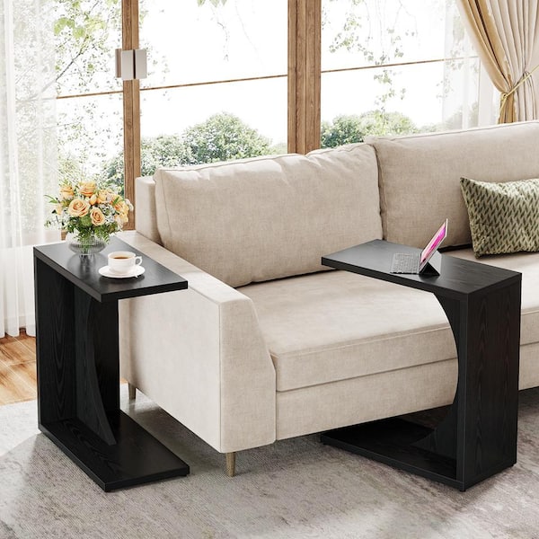 Kerlin 2-PCS 23.62 in. Black C-Shaped Engineered Wood End Table, Couch Table Small Sofa Side Table for Small Space
