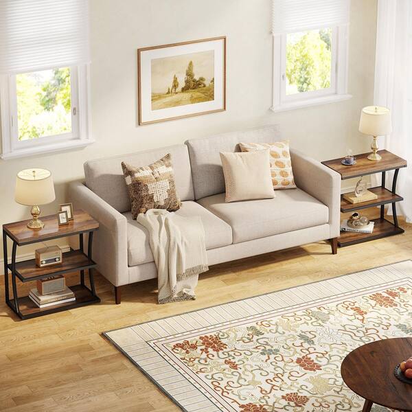 Kerlin 2-Pieces 23.62 in. Brown Rectangle Industrial MDF End Table, Small Sofa Side Table for Living Room, Bedroom