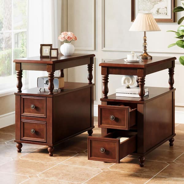Kerlin 23.6 in. Brown Rectangle Solid Wood End Table Side Table with 2 Drawers Set of 2