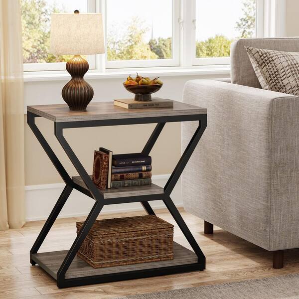 Kerlin 23.6 in. Grey Rectangle Wood End Table (Set of 2) Small 3-Tier Sofa Table Wood Bedside Nighstand with Metal Frame