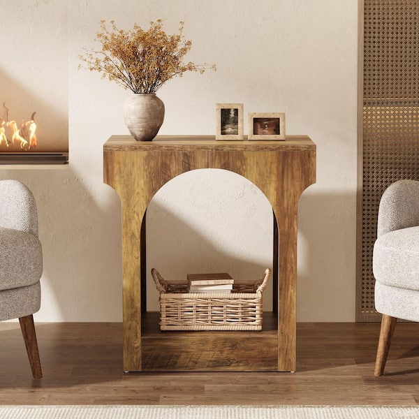 Kerlin 23.6 in. Rustic Brown Short Rectangle Wood End Table with Storage Space, Nightstand Bedroom, Living Room 2-Piece