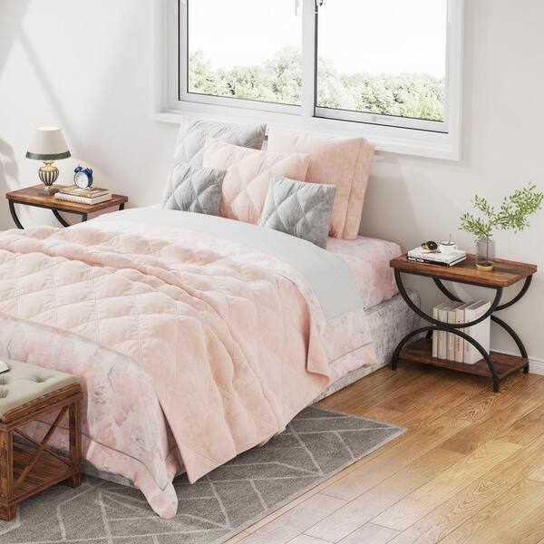 Kerlin 23.62 in. 2-Pieces Rustic Brown and Black Rectangle Wood Side Accent Table 2-Tier Side Table Stylish Metal Frame