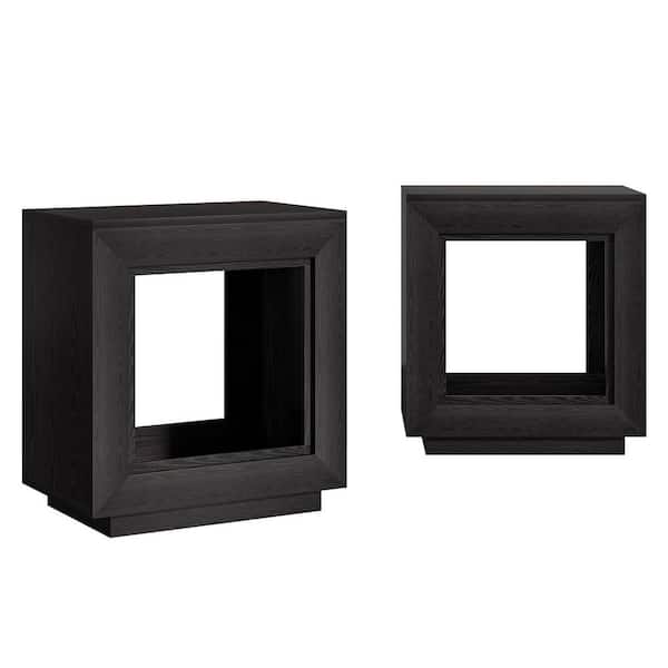 Kerlin 23.62 in. Black Rectangle Wood Side Table 2-Tier End Table with Metal Frame for Living Room, Bedroom, 2-Pieces
