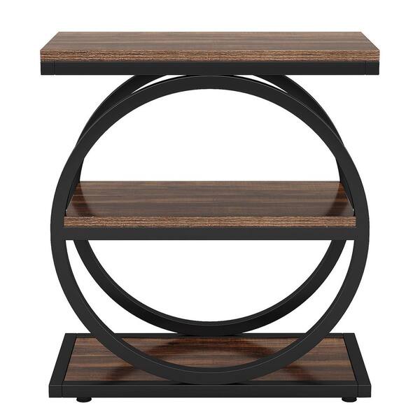 Kerlin 23.62 in. Brown Rectangle Wood End Table with 3 Tiers Storage Shelves and Geometric Base