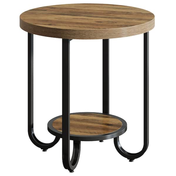 Kerlin 23.62 in. Rustic Brown Round Engineered Wood End Table, 2-Tier Sofa Side Table for Living Room, Bedroom