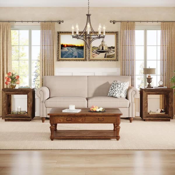 Kerlin 23.62 in. Walnut Rectangular Wood End Table Set of 2, Nightstand Bedside Table with Storage