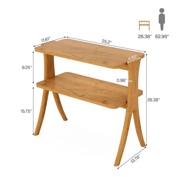 Kerlin 25.2 in. Light Brown Rectangle Engineered Wood End Table with Storage Shelf (Set of 2)