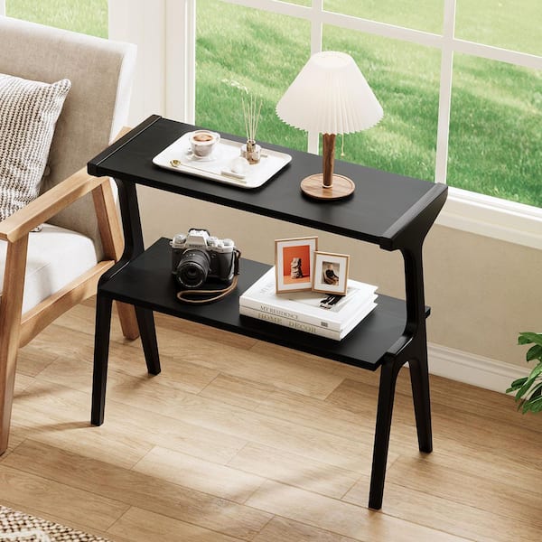 Kerlin 27. 56 in. Black Rectangle All Solid Wood Side Table, Minimalist End Table with Shelves for Living Room