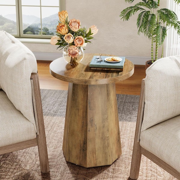 Kerlin 2PCS 19.7 in. Rustic Brown Round Wood End Table, Small Drum Side Table, Snack Table for Living Room, Bedroom