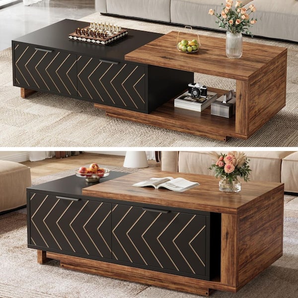 Kerlin 42.13 in. Brown and Black Modern Extendable Center Table with Storage, Rectangle Coffee Table for Living Room