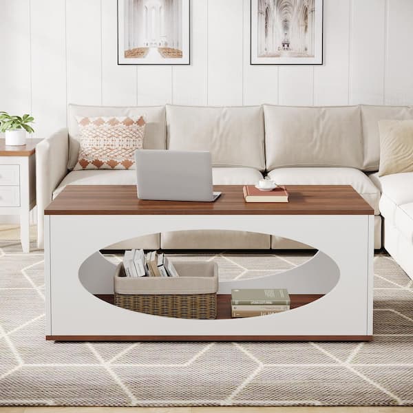 Kerlin 47.2 in. Brown and White Rectangle Engineered Wood Coffee Table with Open Storage for Living Room