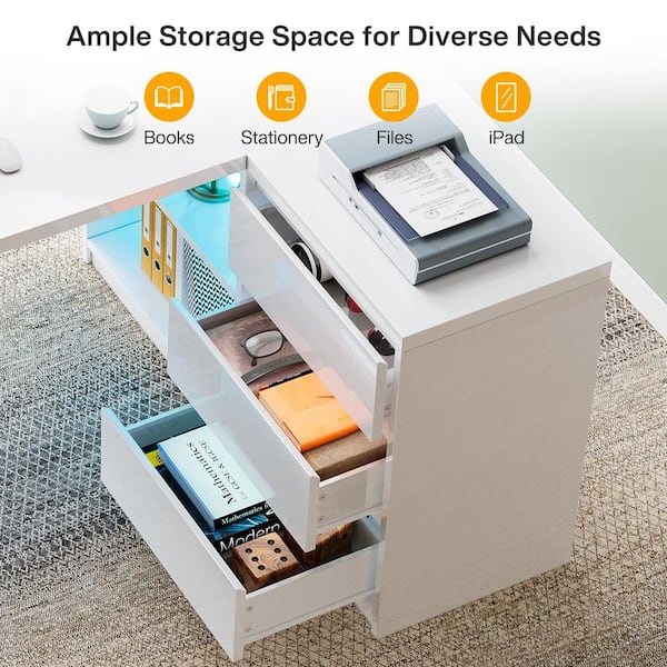 Lanita 55 in. L-Shaped White Wood with 3-Drawer Computer Desk, Corner Executive Desk with 2 Storage Shelves Work Study
