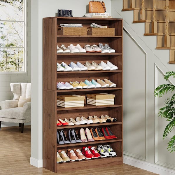 Lauren 8-Tier Large Wood Shoe Storage Cabinet with 6 Adjustable Shelves, Tall Shoe Cabinet for 32-Pairs Shoes, Brown