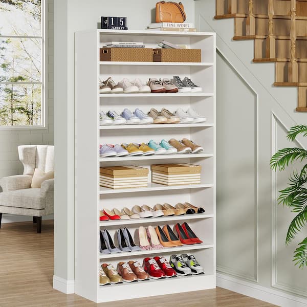Lauren 8-Tier Large Wood Shoe Storage Cabinet with 6 Adjustable Shelves, Tall Shoe Cabinet for 32-Pairs Shoes, White