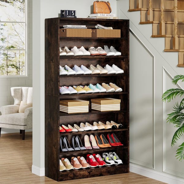 Lauren 8-Tier Large Wood Shoe Storage Cabinet with Adjustable Shelves Tall Shoe Cabinet for 32-Pairs Shoes, Rustic Brown