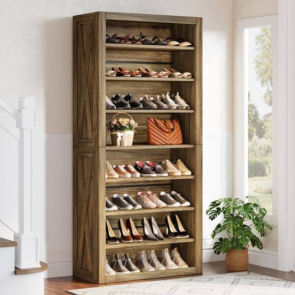 Lauren Brown 71 in. Farmhouse Shoe Cabinet with 7 Adjustable Shelves