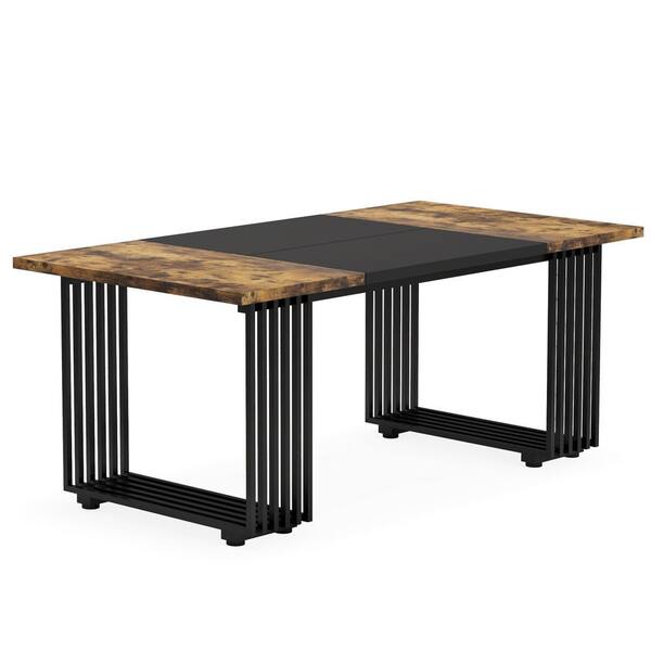 Modern Brown Wood 70.86 in. Sled Dining Table with Metal Legs 8 Seats