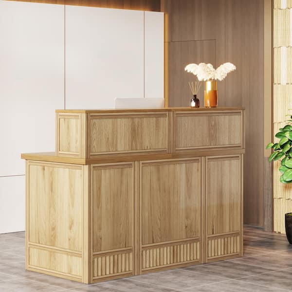 Moroni 56.6 in. Rectangular Brown Wood Reception Computer Desk with Counter