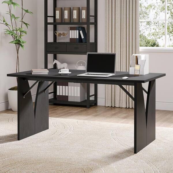 Moroni 63 in. Rectangular Black Wood Computer Desk with Double Pedestal for Home Office
