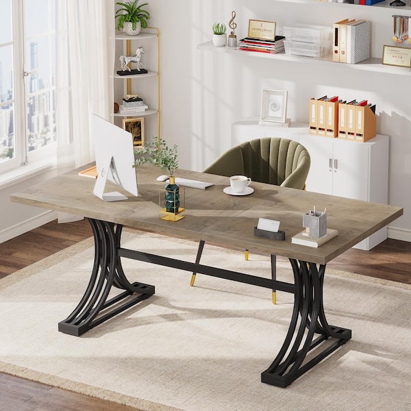 Moroni 63 in. Rectangular Gray Black Wood Computer Desk Solid Metal Legs Work Study