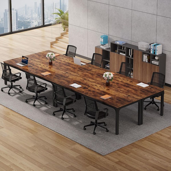 Moroni 78.7 in. Rustic Brown & Black Wood Computer Desk, Rectangular Conference Table Seminar Table for 6-8 People, 4PCS