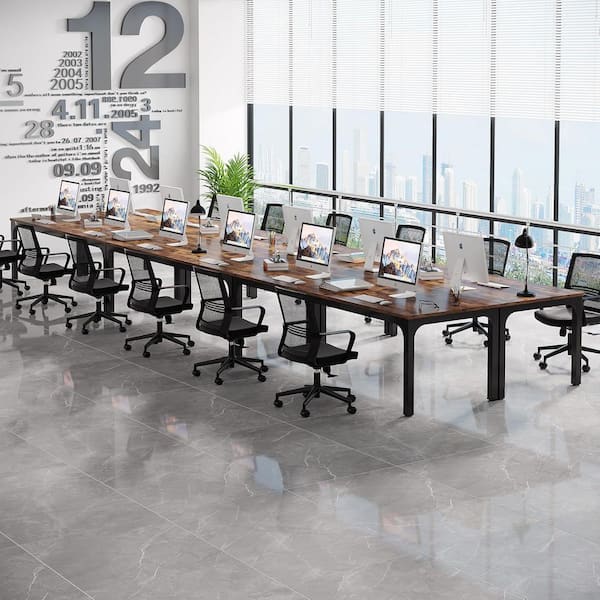 Moroni 78.7 in. Rustic Brown & Black Wood Computer Desk, Rectangular Conference Table Seminar Table for 6-8 People, 6PCS