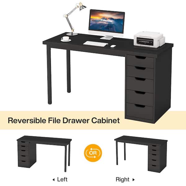 Moronia 47.24 in. All Black Computer Desk with 5 Drawers, Home Office Desk with Storage(Reversible Drawer Cabinet)