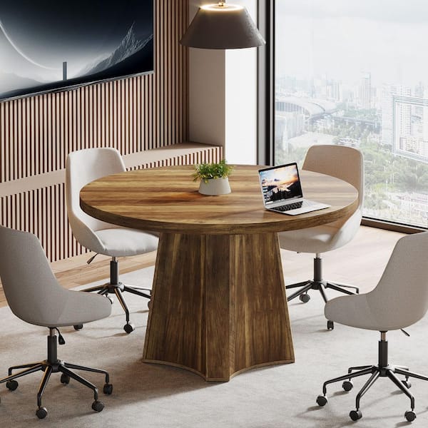 Moronia 47.24 in. Round Brown Wood Computer Desk, Rustic Writing Table, Pedestal Circle Table for Working, Studying