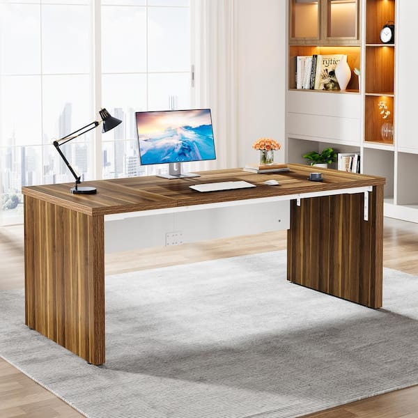 Moronia 62.9 in. Rectangular Brown and White Engineered Wood Computer Desk