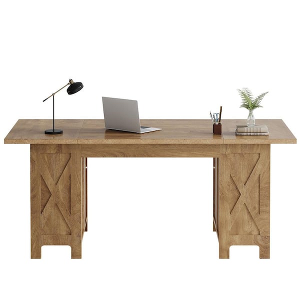 Moronia 63 in. Rectangle Brown Wood Computer Desk Office Executive Desk with 2 Dual-tier Storage Shelves